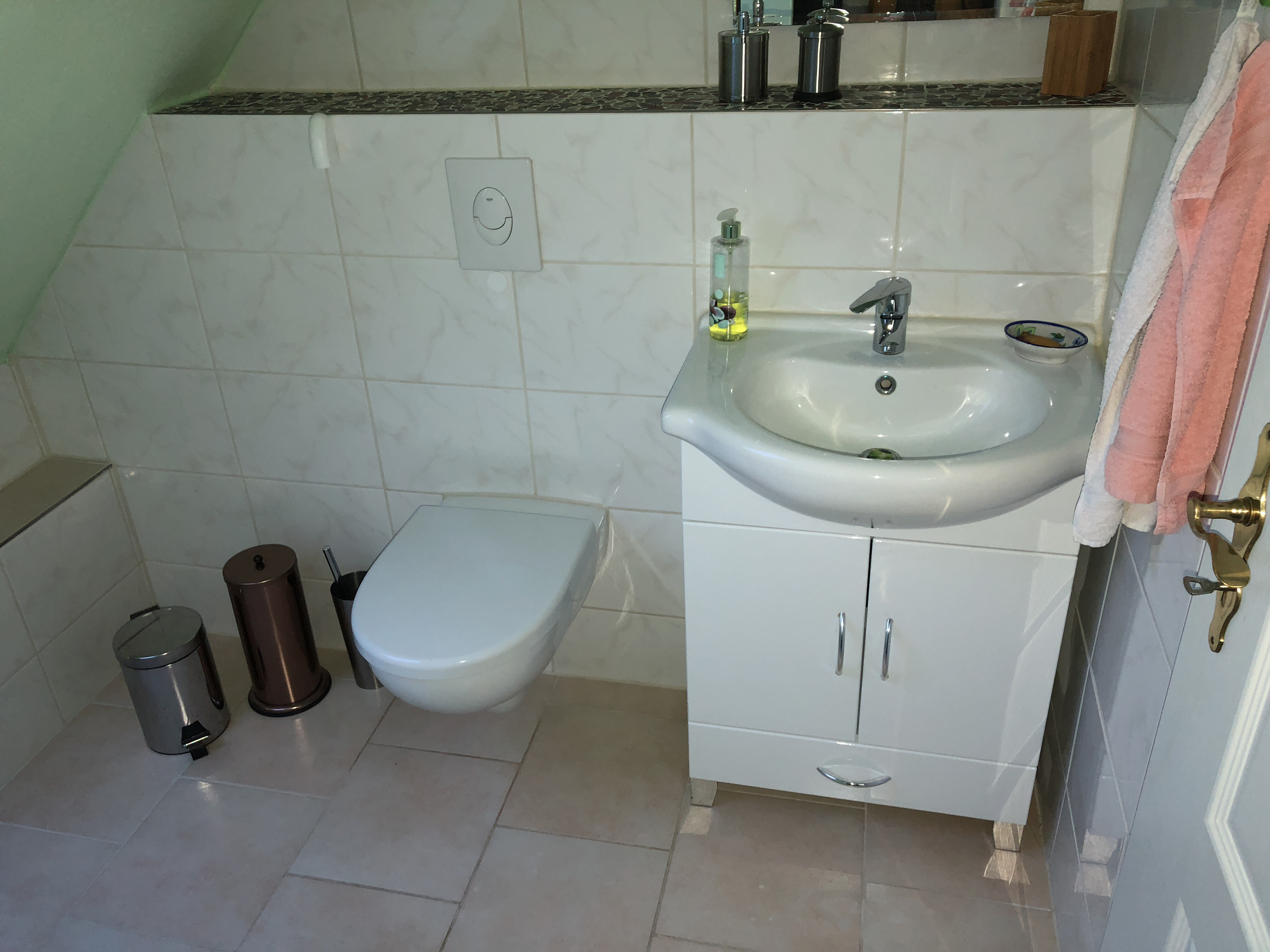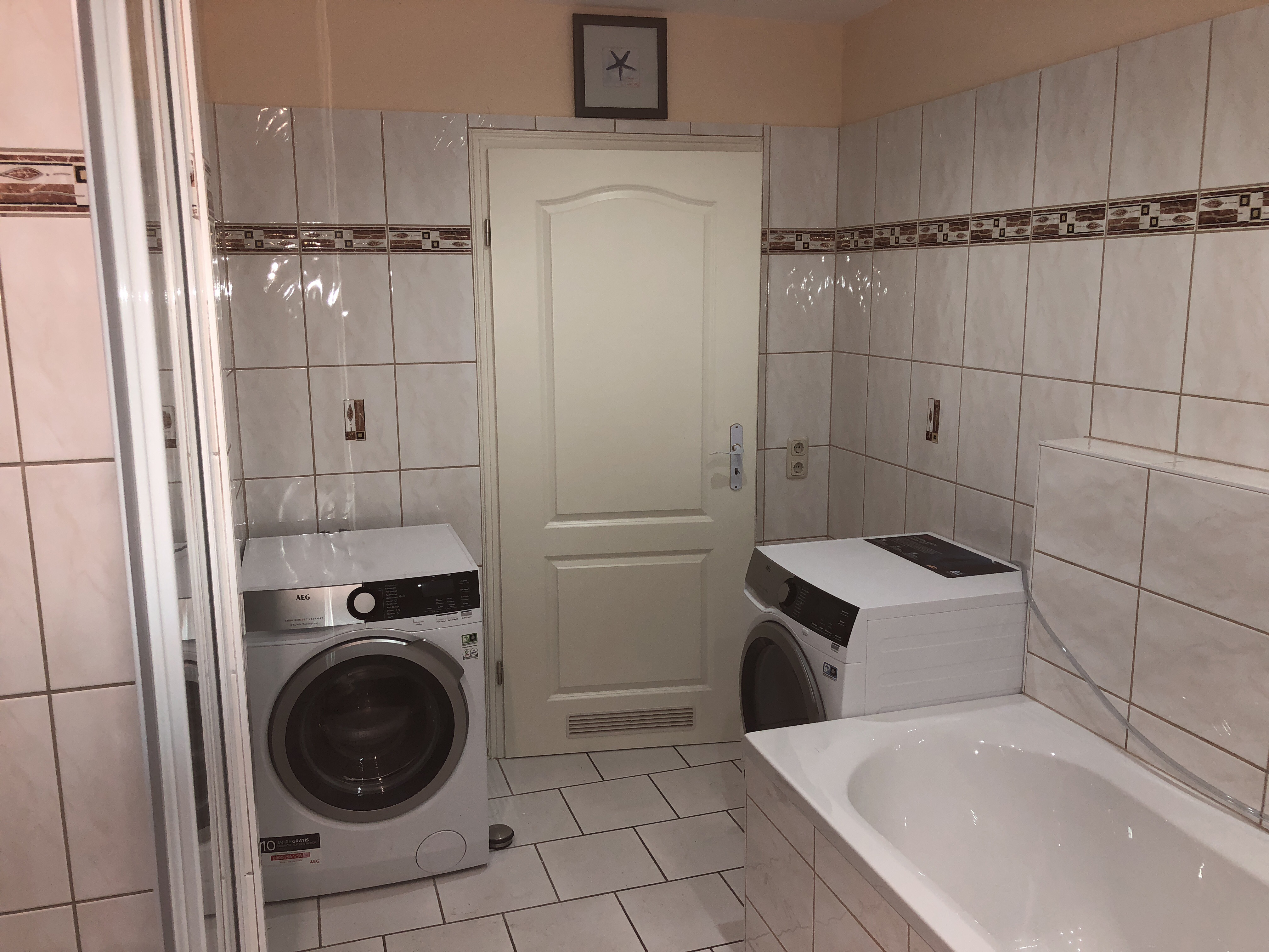 - Ein großes Bad mit WC, Dusche, Badwanne